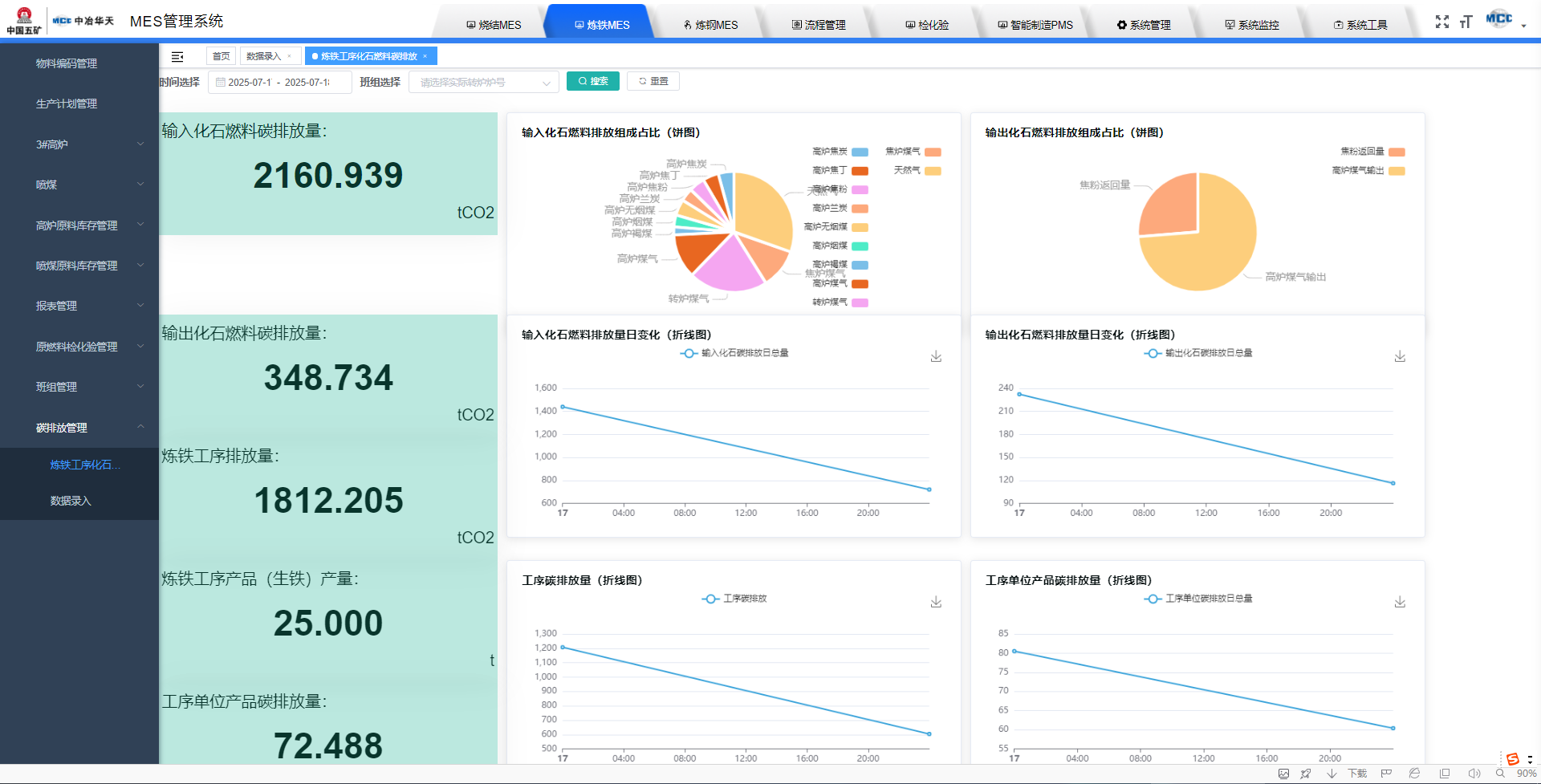 攻堅落地助力市場。為驗證技術可行性,立足公司研發(fā)課題《基于系統(tǒng)優(yōu)化的鋼鐵企業(yè)能源管理與碳排放系統(tǒng)開發(fā)與應用》,中冶華天南京電氣選取鋼鐵生產(chǎn)關鍵環(huán)節(jié)開展demo設計:在冀南鋼鐵實現(xiàn)高爐噸鐵碳排放動態(tài)計算,在興鑫鋼鐵構建燒結過程核算模型,在亞新煉鋼和攀長特軋鋼驗證轉爐、熱軋工序的碳排放因子動態(tài)修正算法。經(jīng)上述多場景Demo測試,團隊構建起覆蓋“燒結—高爐—轉爐—軋鋼”全流程碳排放核算案例,攻克了生產(chǎn)數(shù)據(jù)碎片化、數(shù)據(jù)時間維度不對齊、核算邊界不統(tǒng)一、因子動態(tài)更新困難等技術瓶頸,為山西亞新煉鋼集控項目前期市場調研與投標工作提供了支撐。